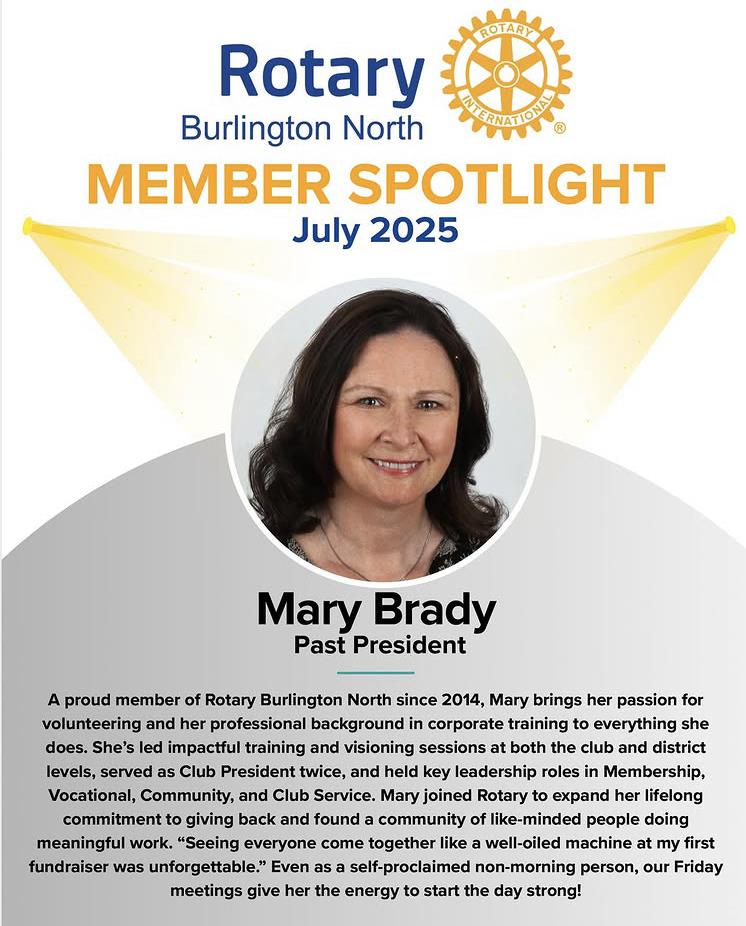 Are you looking for a way to connect with others, give back to your community and have lots of fun? Join us for a complimentary breakfast meeting to see what is happening at the Rotary Club of Burlington North.